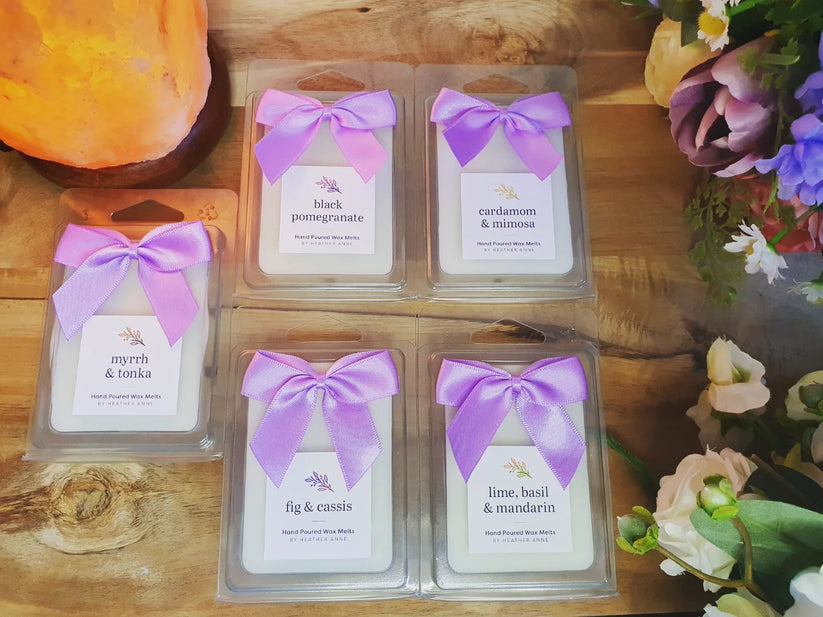- 3x wax melt clam shells handmade by Heather including new releases and exclusive scents only available in the monthly box