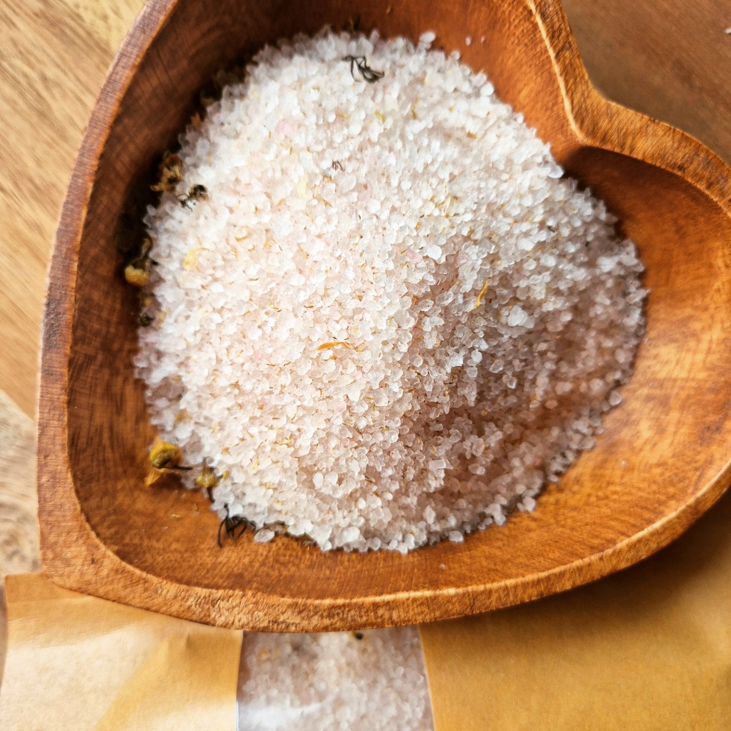 Let the detoxifying properties of Himalayan salt cleanse and replenish essential minerals while Geranium Essential Oil balances and hydrates. The zesty notes of Grapefruit Essential Oil uplift your mood, while Vitamin E Oil deeply nourishes for soft, glowing skin. Chamomile Flowers add a soothing botanical touch, making this the perfect self-care ritual.